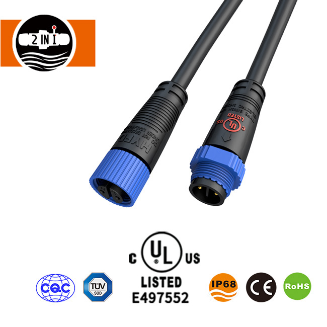 Водонепроницаемый штекерный разъем UL M15, 2-полюсный, 3-полюсный водонепроницаемый разъем, внесенный в список UL, отформованный с кабелем, который широко используется для наружного светодиодного освещения. Тип кабеля и его длина могут быть изменены.